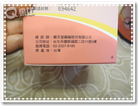 盒身有順天堂製藥、製造批號等資訊